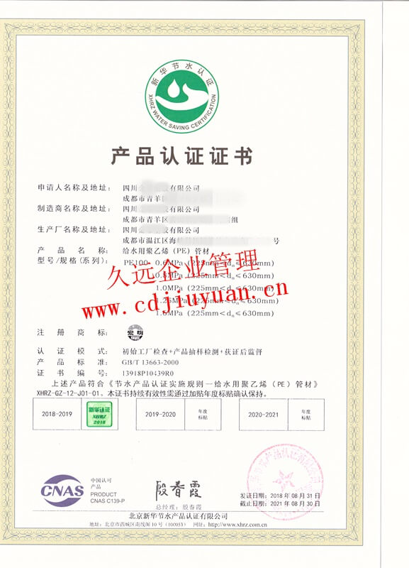 節(jié)水產(chǎn)品認證證書